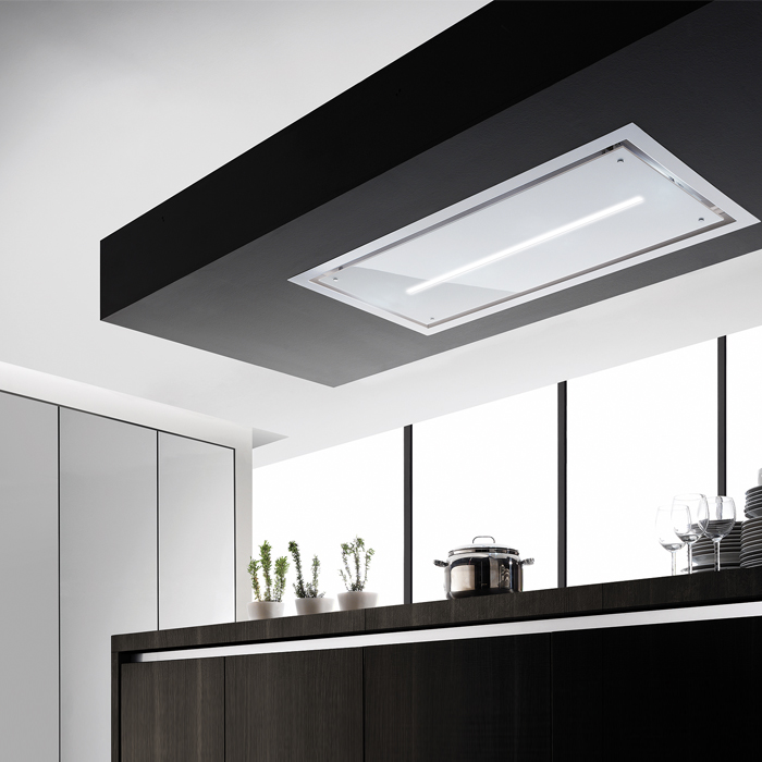 Hette til innbygging i tak. Med innebygget motor - Hvit / Crystal white glass - Leveres med fjernbetjening - 1180 mm