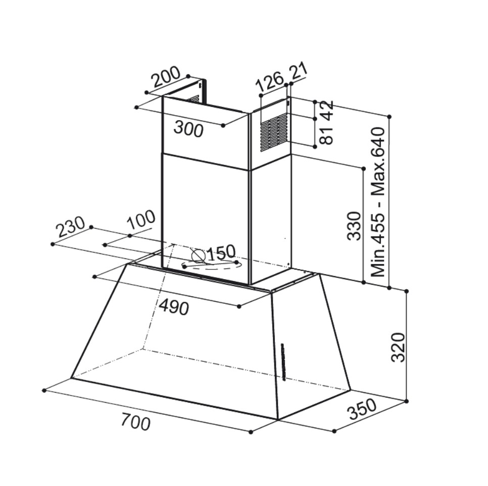 - Luftstrøm min-max 270 - 590 m3/t