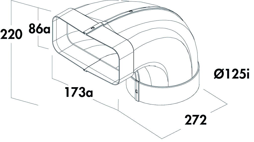F-bion bøyning 90 GR 80x170 - Ø125 - Produktark