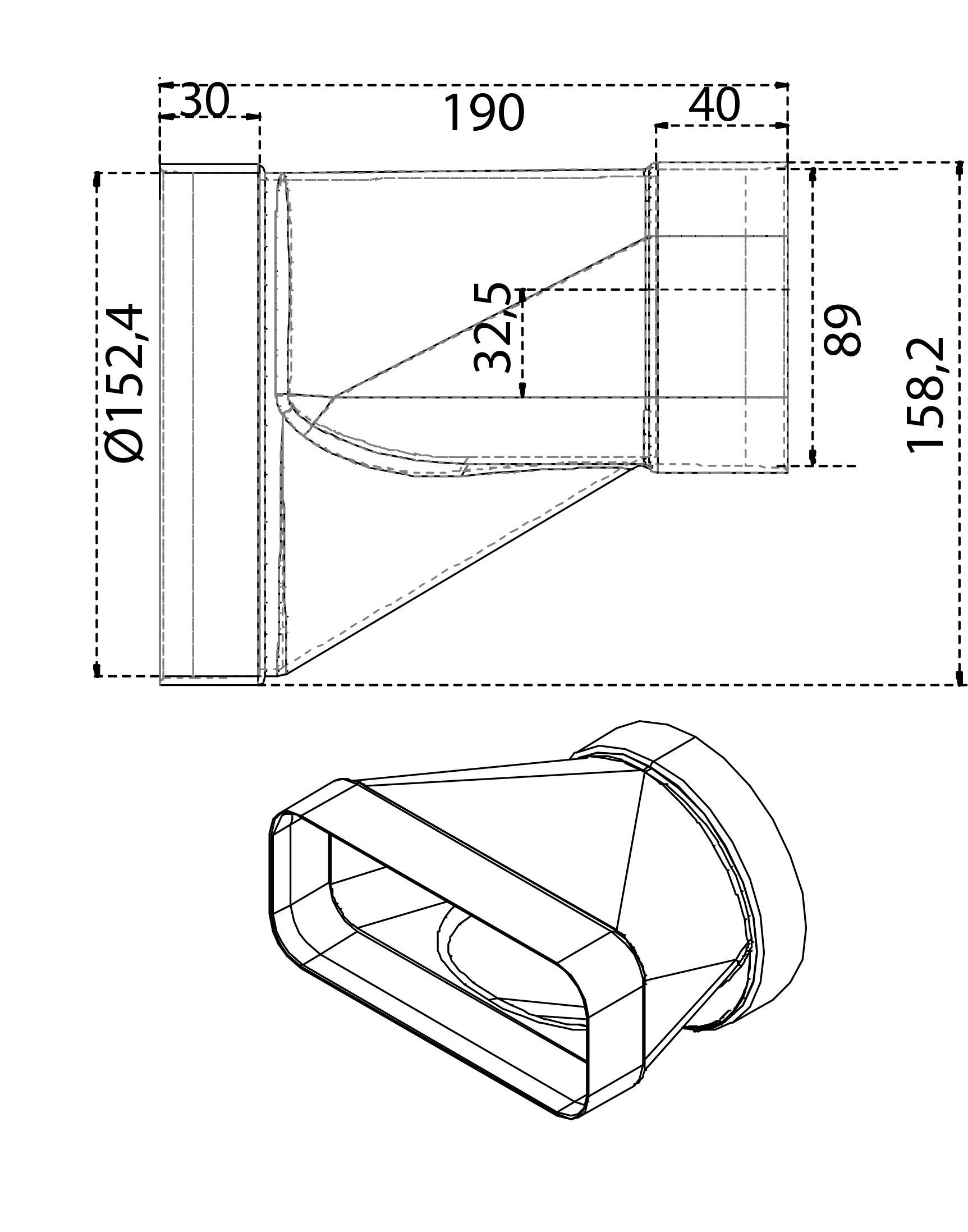 Overgangsstuss 90x220, Ø150, Hvit, dia 150 mm - Produktark