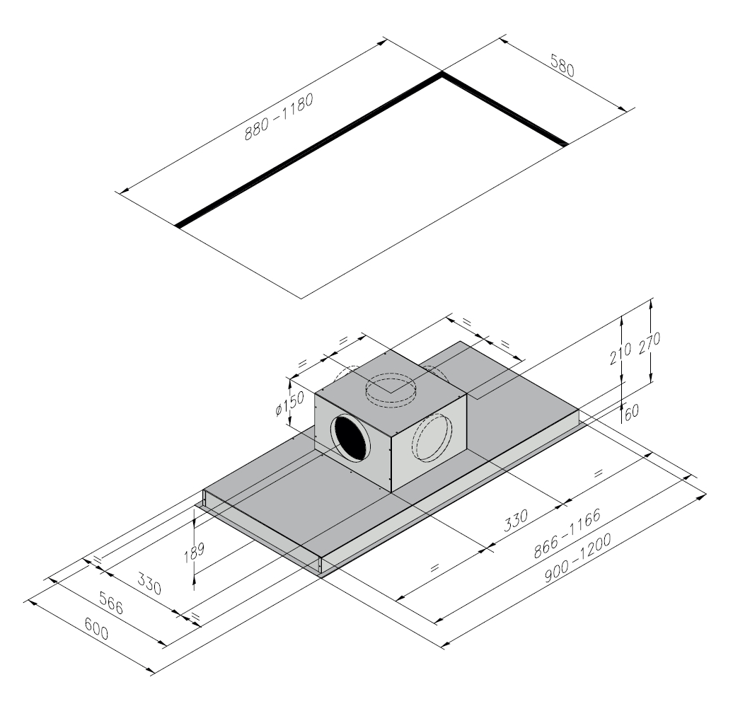 - Produkt (BxDxH) 1200 x 600 x 270 mm