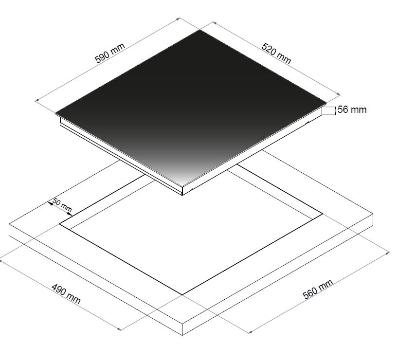 - Produkt (BxDxH) 590 x 520 x 56 mm