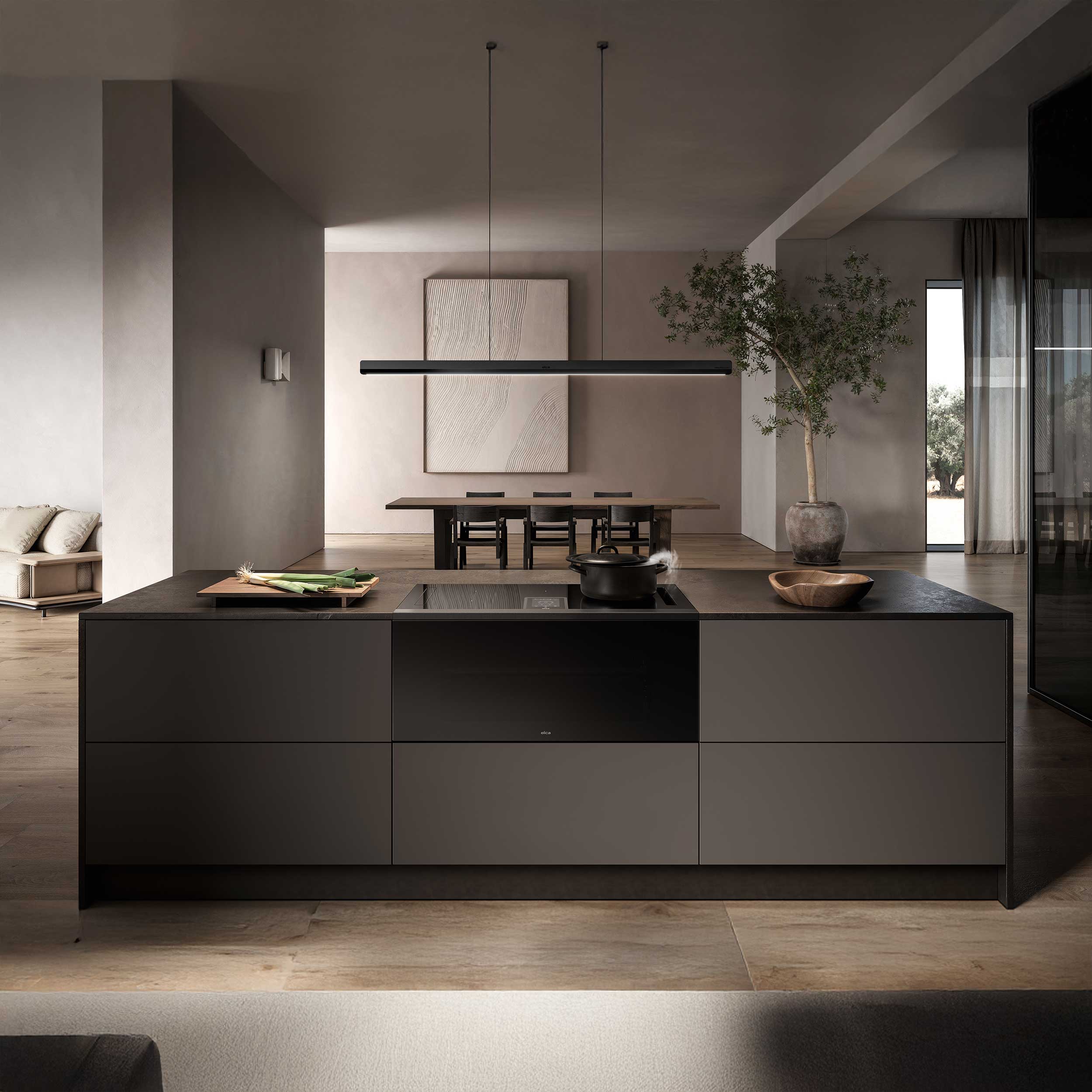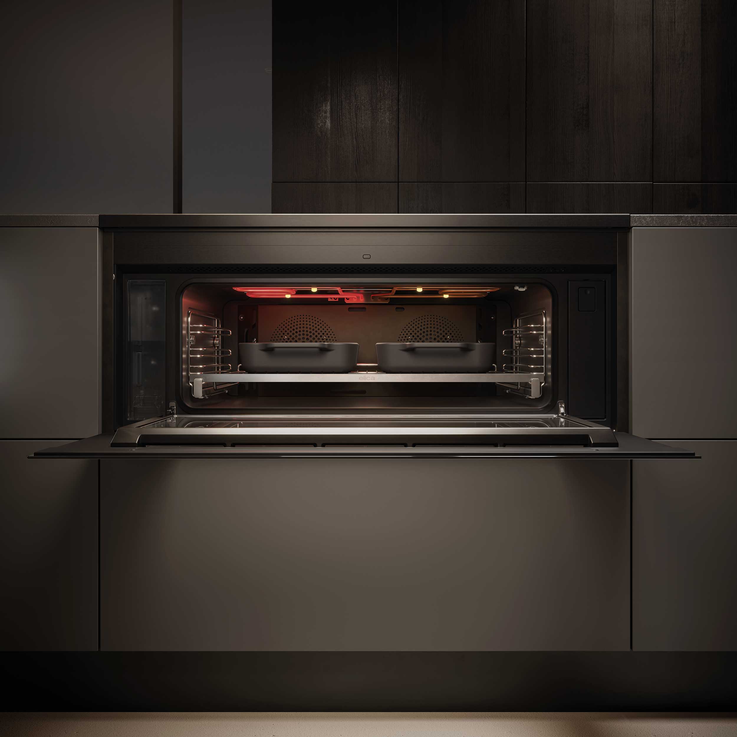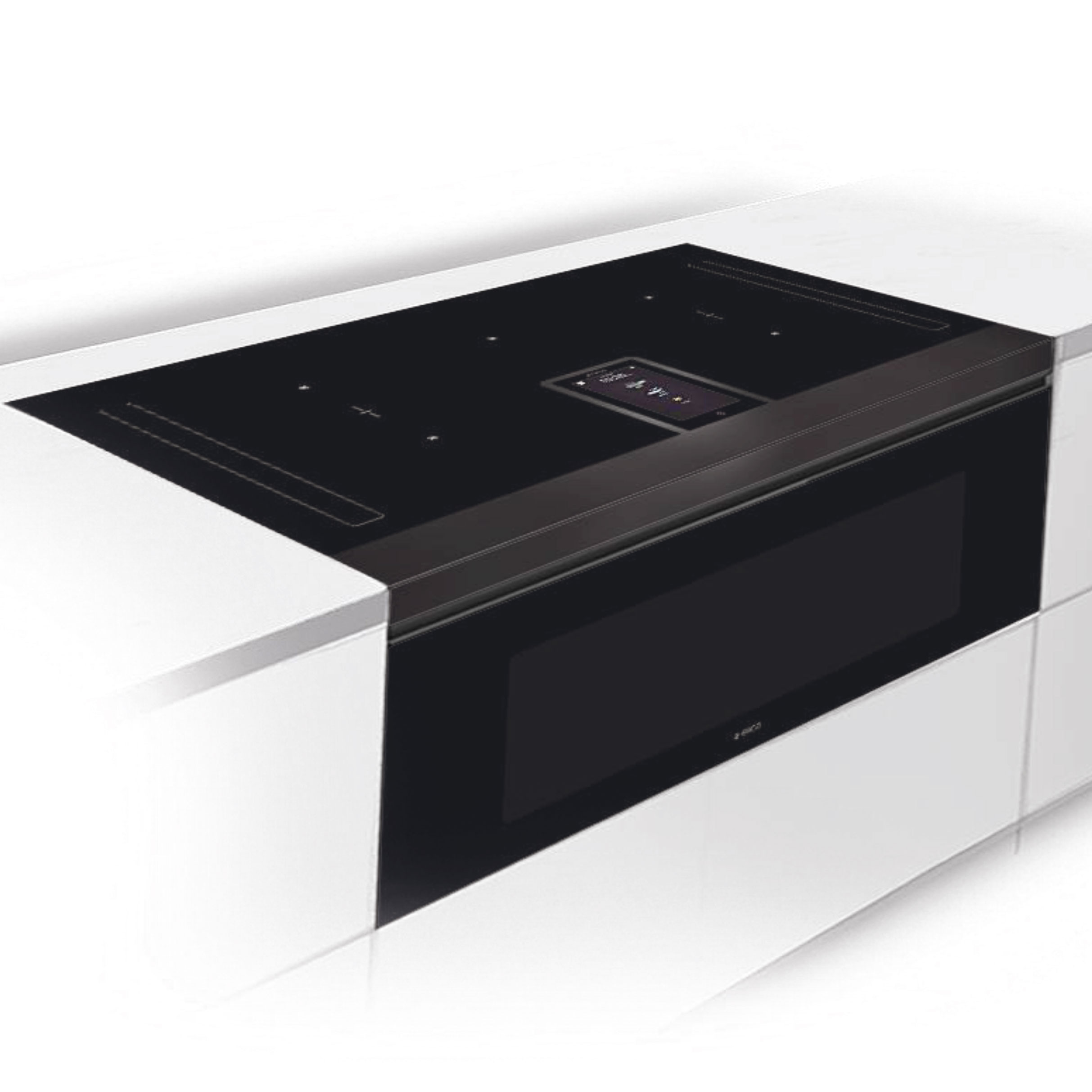 LHOV BL/A kombinerer dampovn, induksjonsplatetopp med fem soner og effektiv ventilator i én integrert enhet. Med børsteløs motor, Selective Autocapture sensorteknologi og lavt støynivå på 62 dB(A) ved maksimal effekt. Elegant svart glassdesign med håndtaksfri dør og digital TFT-touchstyring.