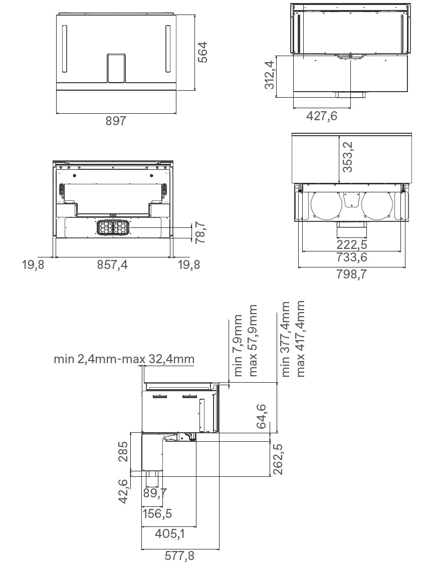 Avtrekksversjon som kan konverteres til resirkulasjon med rørføringssett (følger ikke med).