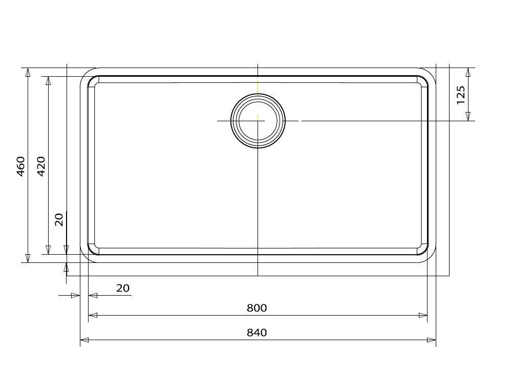 Stålvask, Enkel kum uten bakkant. For under- eller planliming, Stålvask, Enkel kum uten bakkant - Rustfritt stål