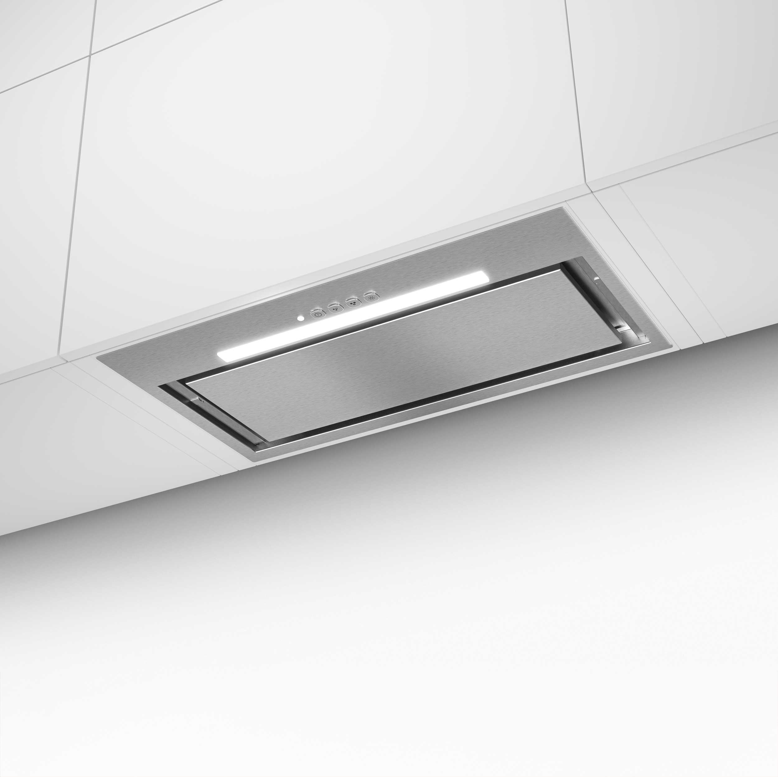 - Kompakt og effektiv kjøkkenvifte i rustfritt stål for full integrering